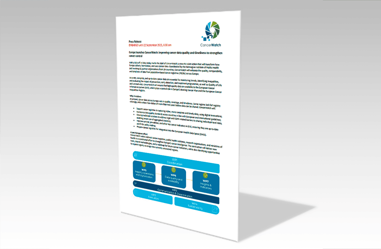 Today in Oslo, CancerWatch officially kicks off a new EU Joint Action that will improve the quality, comparability, and timeliness of cancer data across Europe.