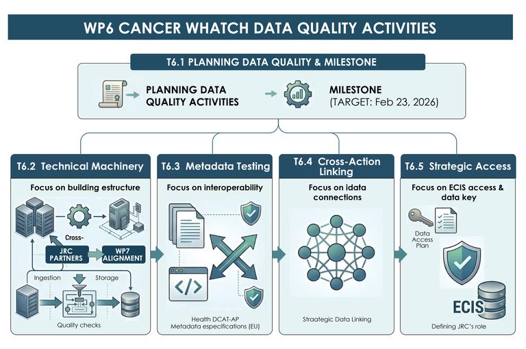 The kick-off online meeting of Task T6.1 was organized by the Foundation for the Promotion of Health and Biomedical Research (FISABIO), Valencia, Spain, with the participation of 27 attendees involved in the CancerWatch JA, the Joint Research Centre (JRC) in Ispra, and other data quality experts.
